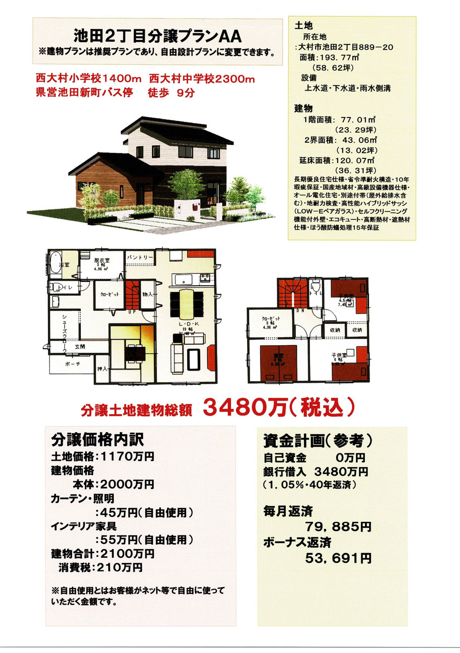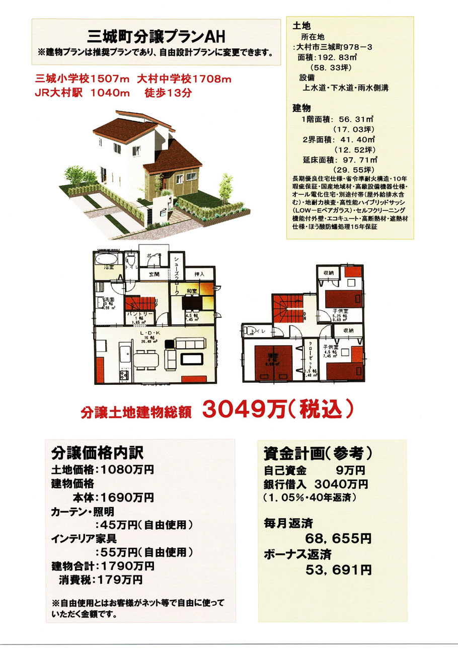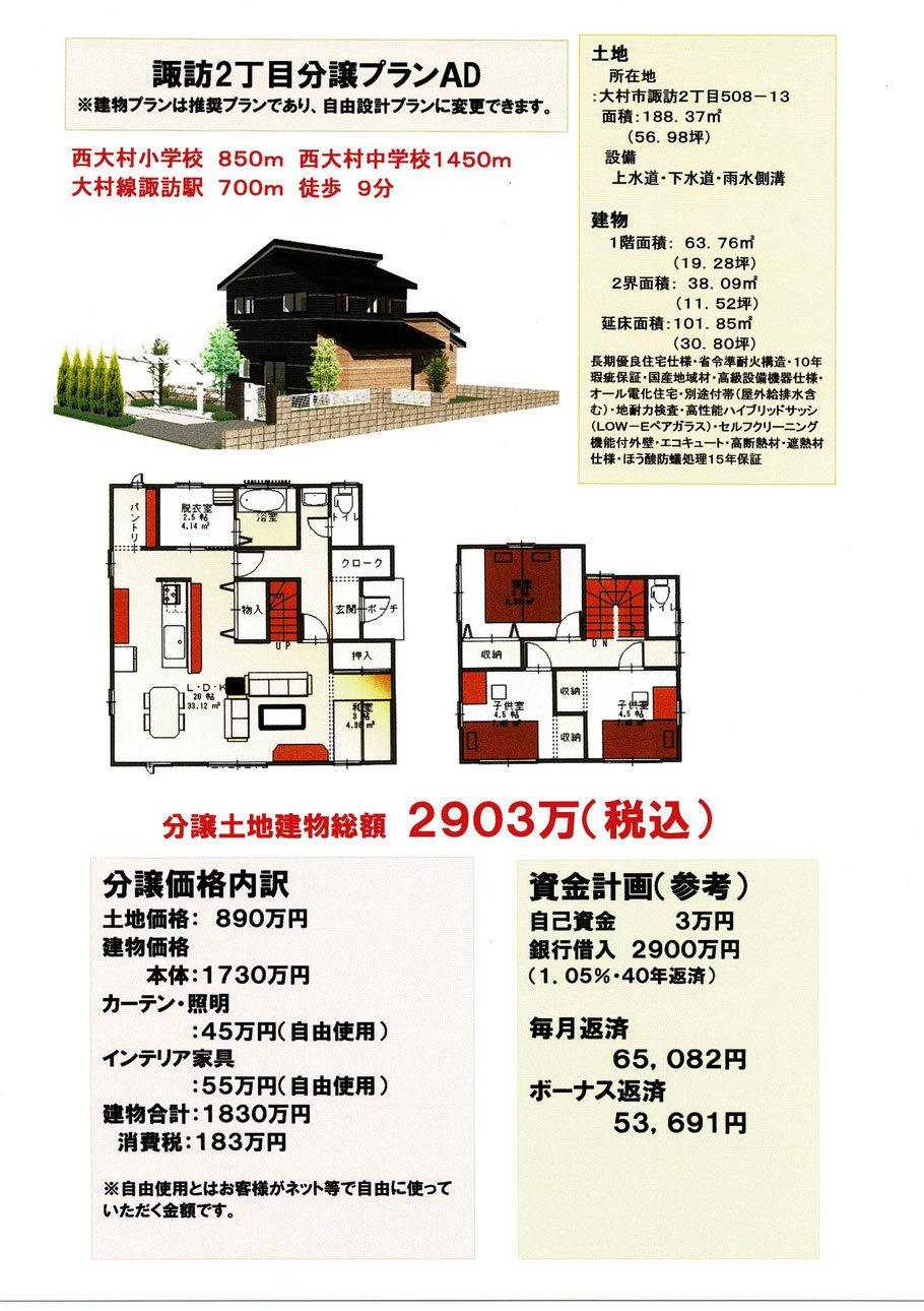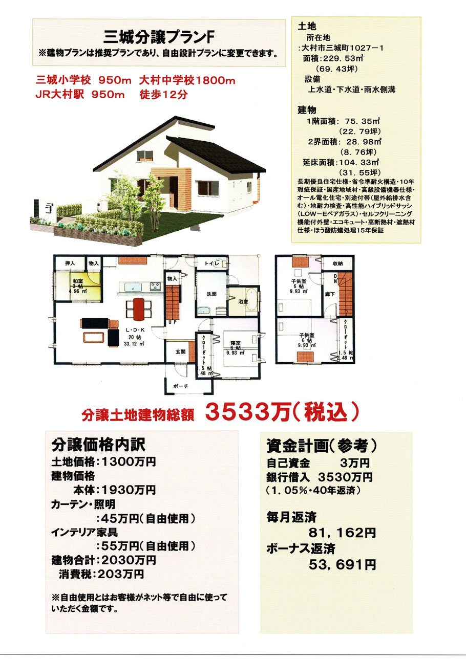 ※分譲地の建物は推奨プランですのでご希望の間取りに変更できます。