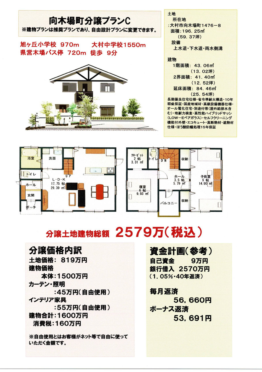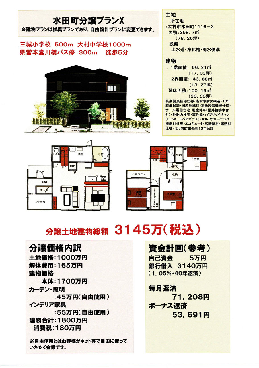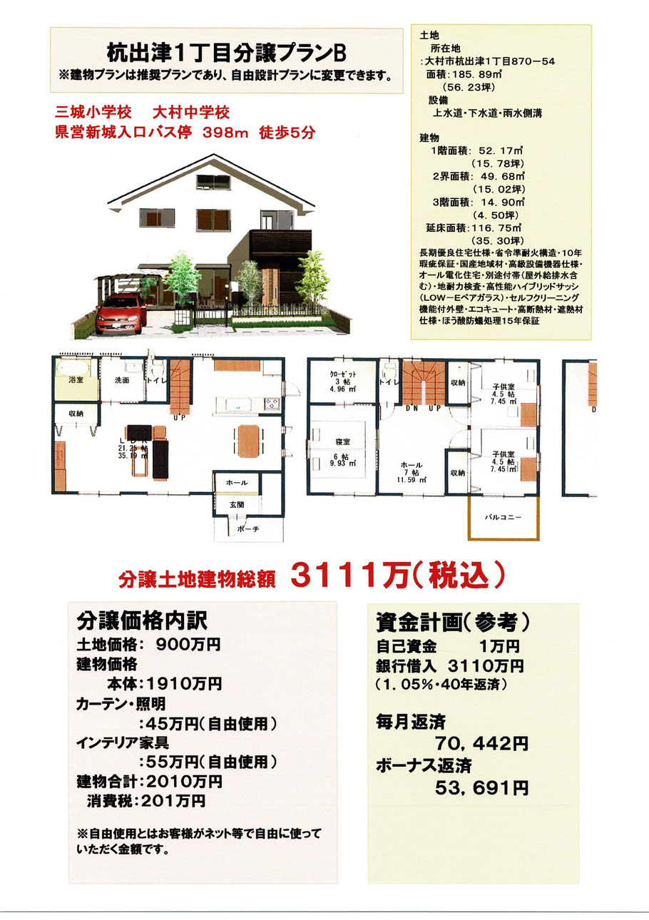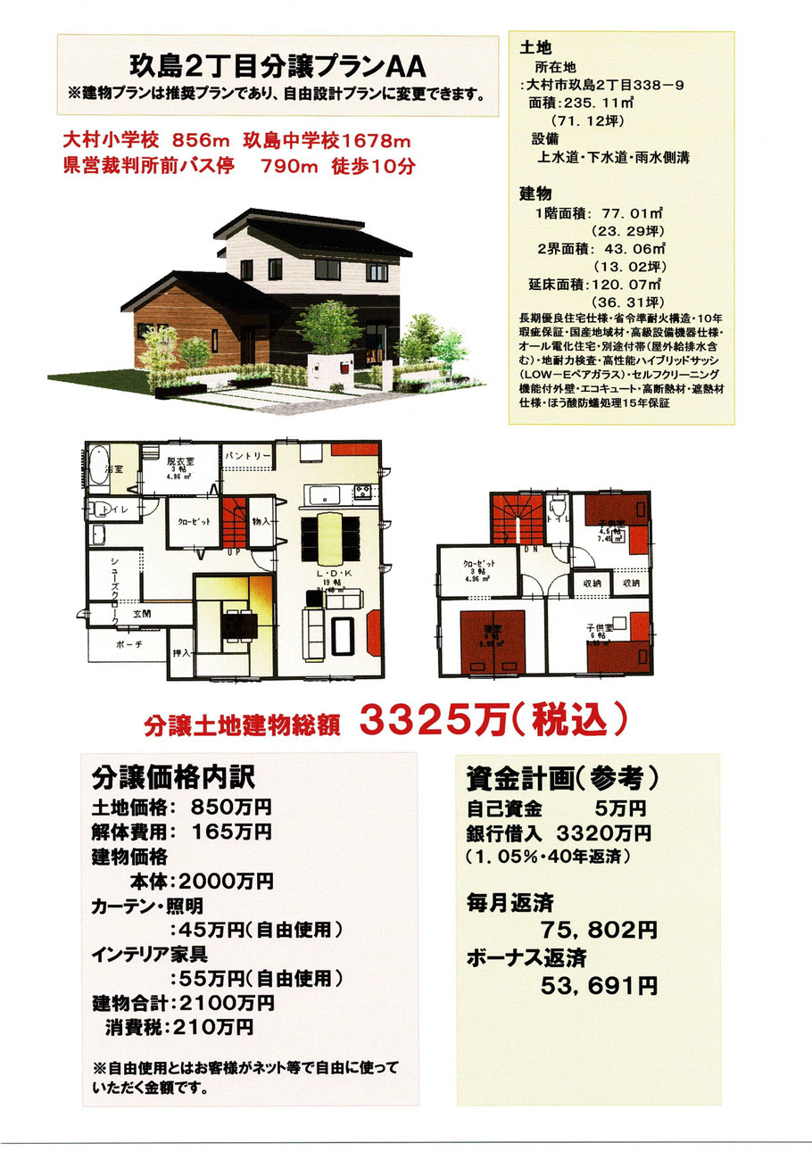 ※分譲地の建物は推奨プランですのでご希望の間取りに変更できます。
